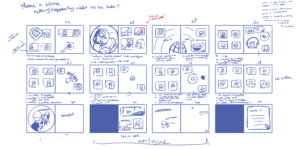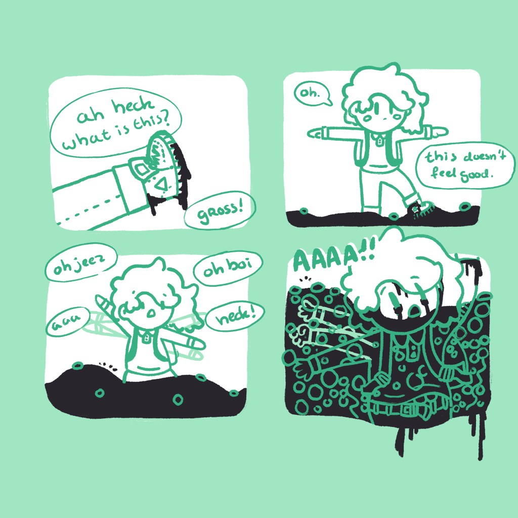 the initial release of the comic in weekly increments on social media and Tapas took place simultaneously to the events in the comic. unsurprisingly, it was those events that forced me to put the comic on an extended hiatus, so i could focus and get a diagnosis. it wasn’t until after my internship semester that i started to pick the comic back up again, working in procreate redoing the artwork entirely and writing the second half of the story.