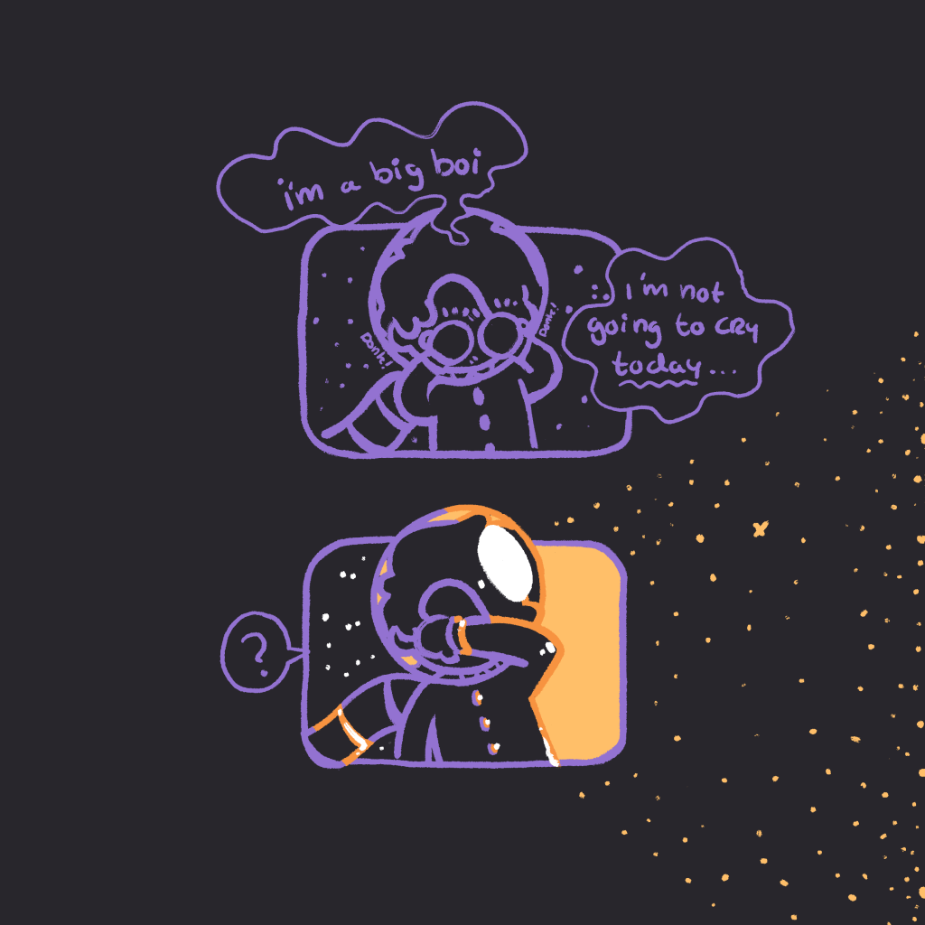 ice cream astronaut is a surreal slice of life comic made for the internet in 2019. the comic follows the author as they find a design internship but get lost in space in the process. originally starting out on twitter and tapas in weekly updates, i ended up taking a hiatus due to life events and finishing it over the course of a month for a short-lived Patreon account. the full 44-page comic is now freely available here and bundled with downloads of my sunday EP, released in march of 2020.