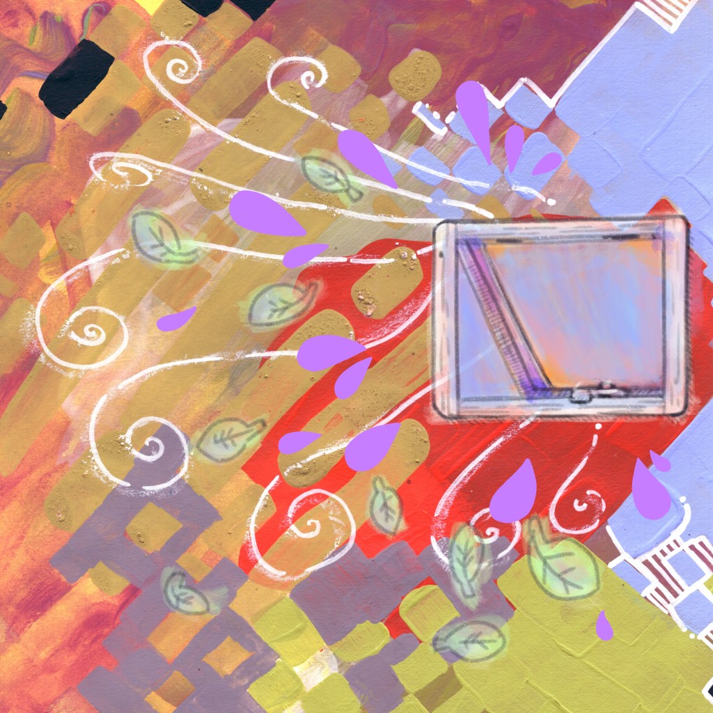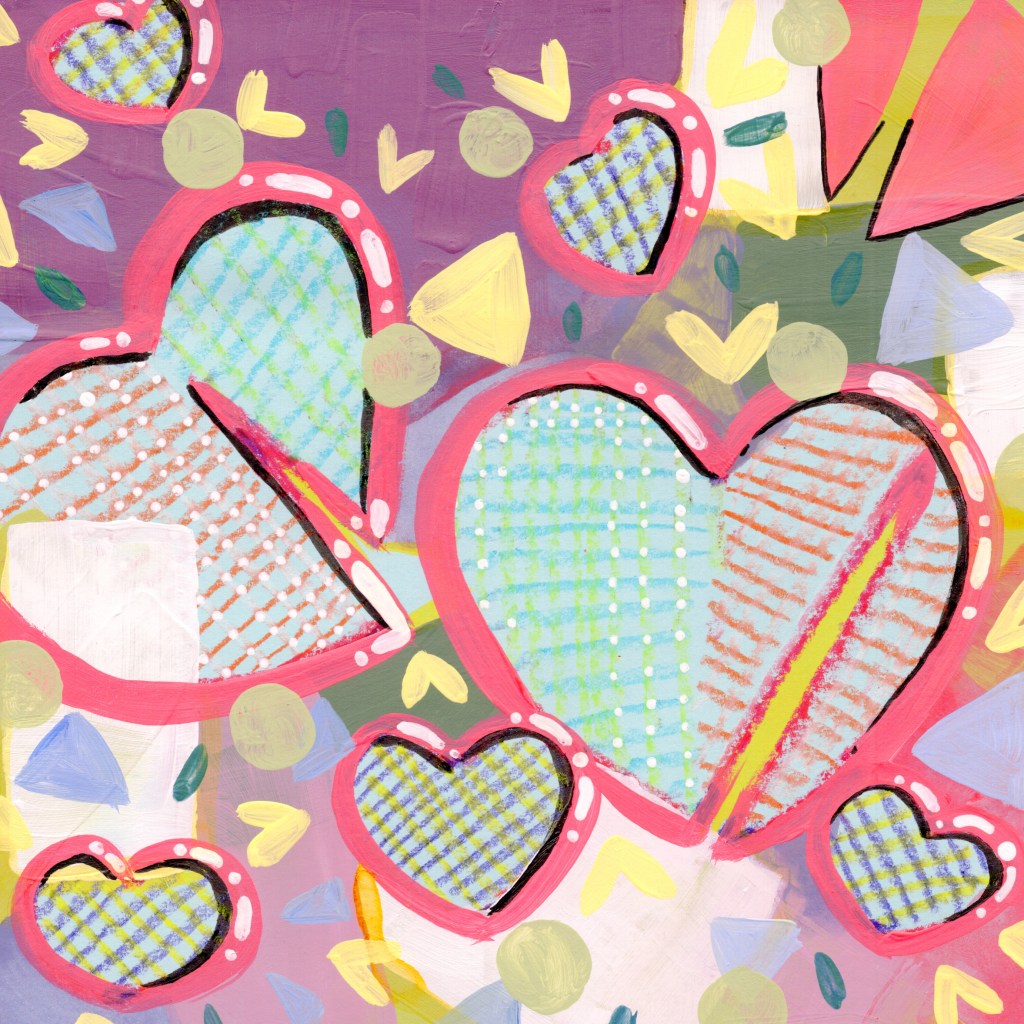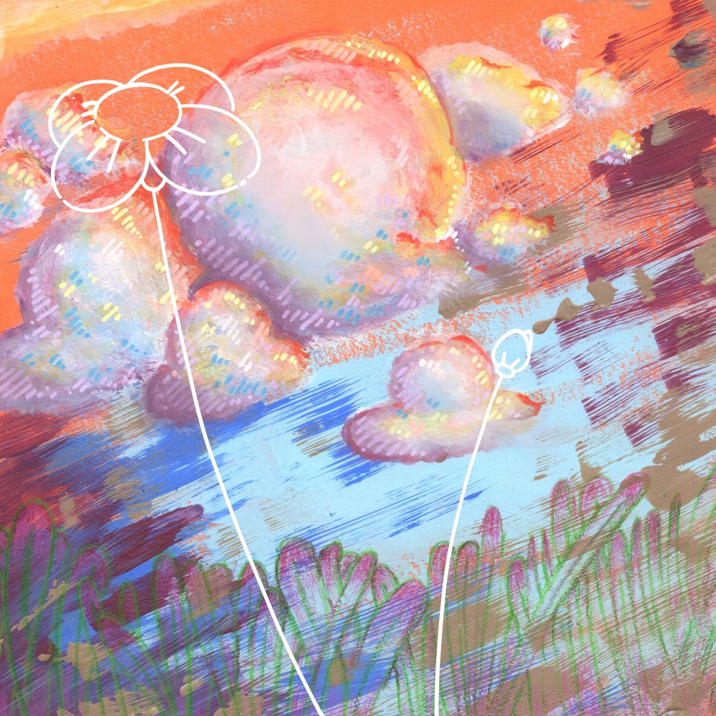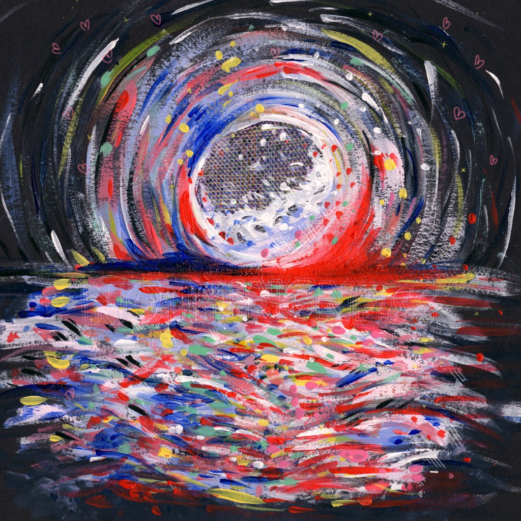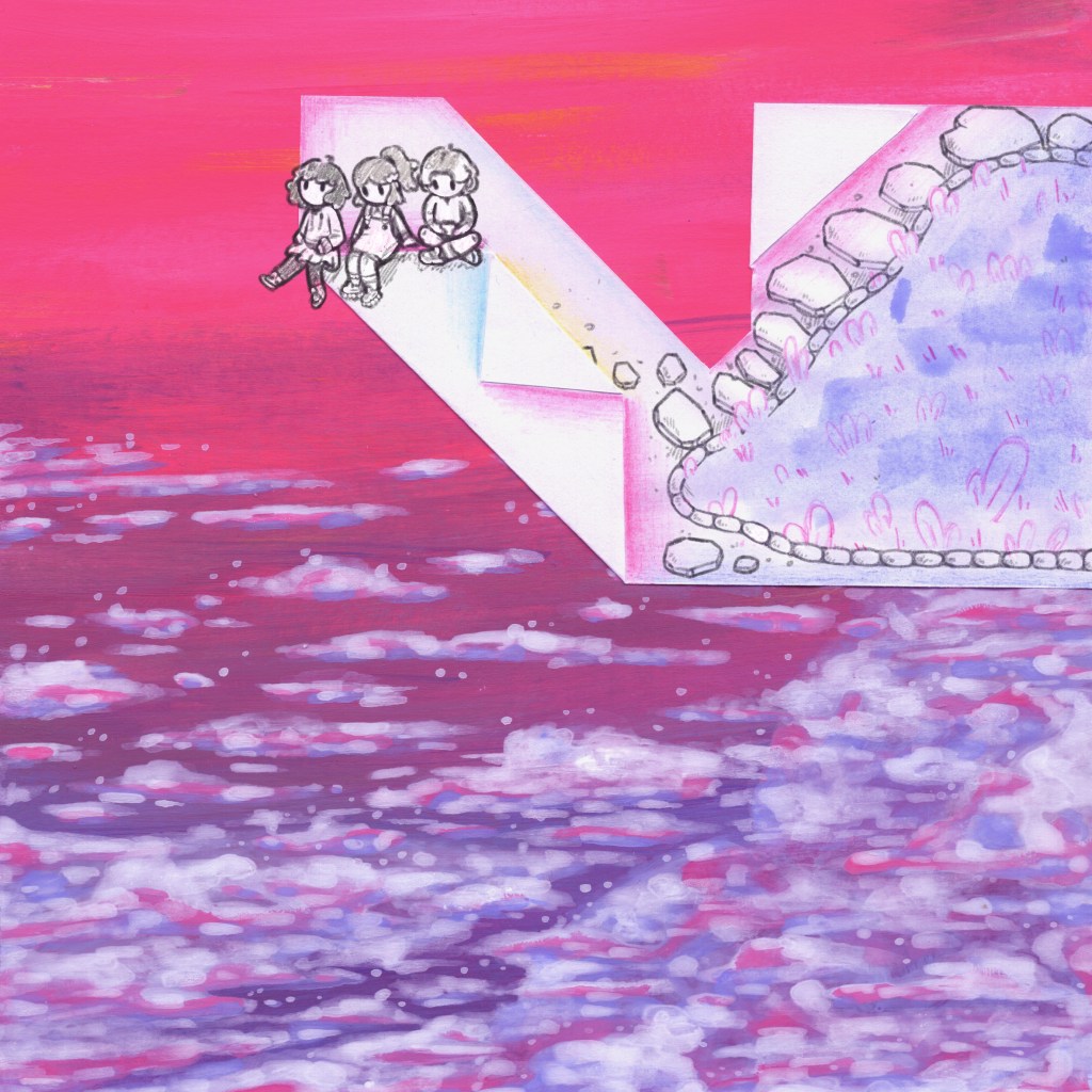 artwork for the individual tracks was made simultaneously to the original demos over the course of 12 weeks in the spring of 2022. all artwork has been made using a combination of traditional media (acrylic, watercolours, wax crayons, coloured pencil, yarn, plastics, nail polish, acetone) and digital media. All artworks use coloured cardstock as a basis.
